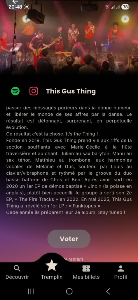 Ca prend 30s par jour. ll suffit d’aller dans l’onglet Tremplin de l’application, de chercher This Gus Thing et de cliquer sur voter (voir les images ci-dessous)